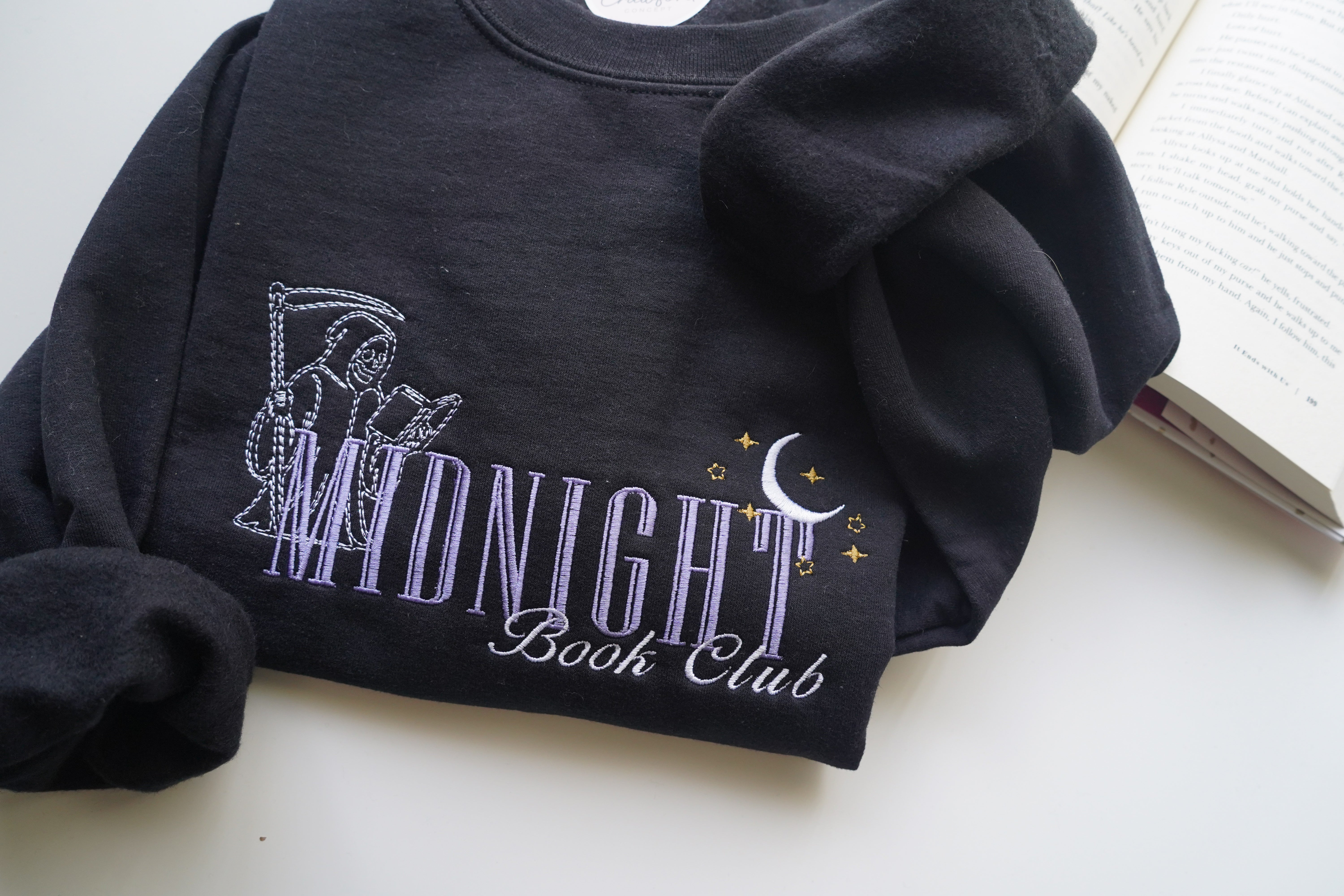 Stay cozy while you turn the page with our Midnight Book Club crewneck and hoodie. Perfect for late-night readers, this soft and stylish piece is made for book lovers who want comfort and charm after dark